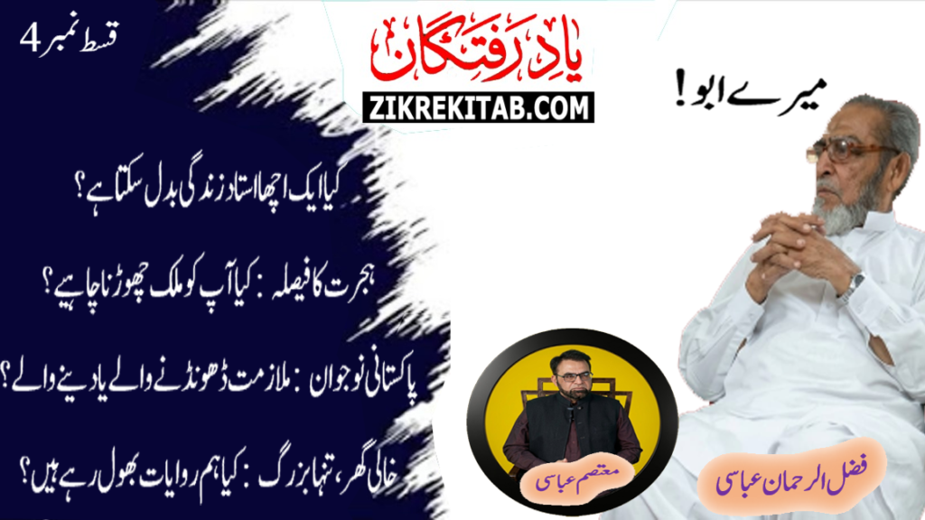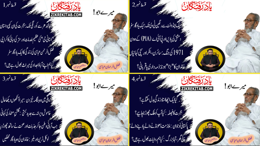 اس افتتاحی قسط میں معتصم صاحب نے اپنے والدِ محترم فضل الرحمن عباسی صاحب کی حیاتِ طیبہ اور ان کے پیشہ ورانہ سفر کا نہایت عقیدت سے ذکر کیا ہے۔